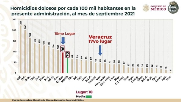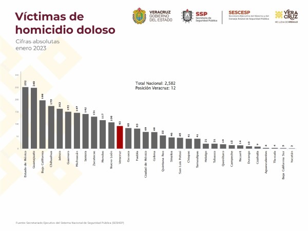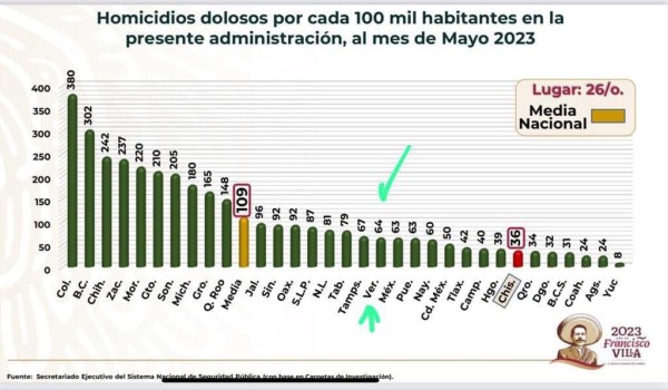 Veracruz, por debajo de la media en homicidios dolosos por cada 100 mil habitantes