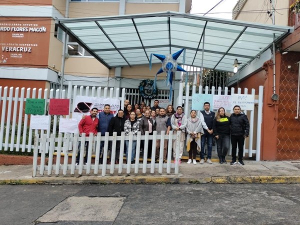 Agremiados del SITEV la Escuela de Bachilleres Oficial B de Xalapa, protestan por la designación en lo oscurito del Miriel Carlos Morales Carreto como nuevo director