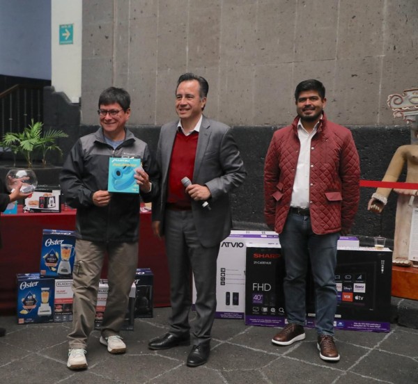 Gobernador Cuitláhuac e Iván Luna festejan fin de año con reporteros y periodistas de la fuente de Palacio.