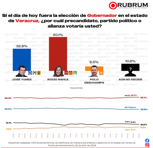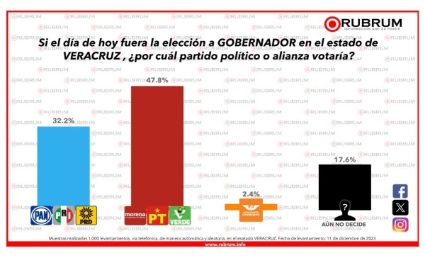 Morena aventaja solo en 15 puntos a coalición PAN-PRI-PRD, según Rubrum