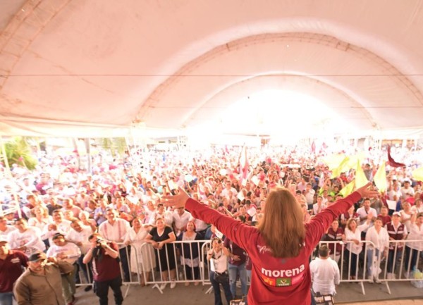 ‘Vamos a ganar porque tenemos propuestas y sabemos trabajar’: Rocío Nahale, en San Rafael, Veracruz.
