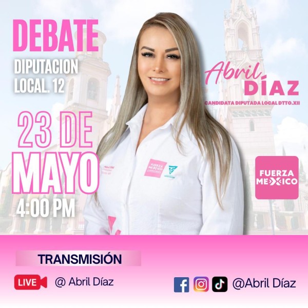| .- Leticia Abril Díaz Pozos, candidata a la diputación local por el distrito electoral XII de Coatepec por el partido Fuerza por México-Veracruz, (FxMV) tendrá a las 4 de la tarde de este 23 de mayo la oportunidad de dar a conocer sus propuestas ciudadanas de campaña al participar en el debate promovido por la autoridad electoral.