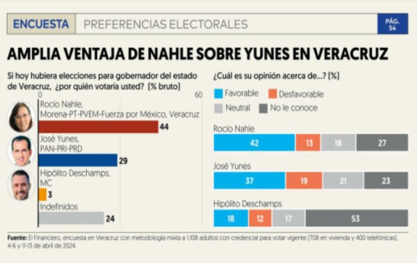 | Amplia ventaja de Nahle sobre Yunes en Veracruz, según El Financiero |