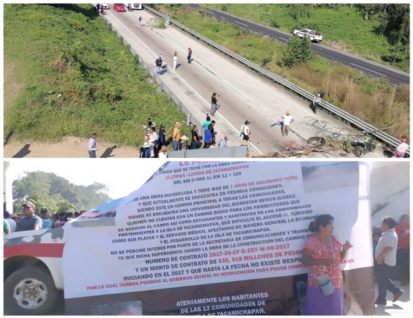 | .- Esta mañana, campesinos de la zona de Lomas de Tacamichapan iniciaron un bloqueo de la autopista Cosoleacaque - La Tinaja, en el sur de Veracruz, por una obra que dejaron inconclusa desde hace más de 7 años.