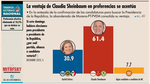 | El fenómeno Xóchitl sigue sin pintar en las encuestas. Claudia casi le dobla la ventaja en cuanto a la preferencia efectiva |