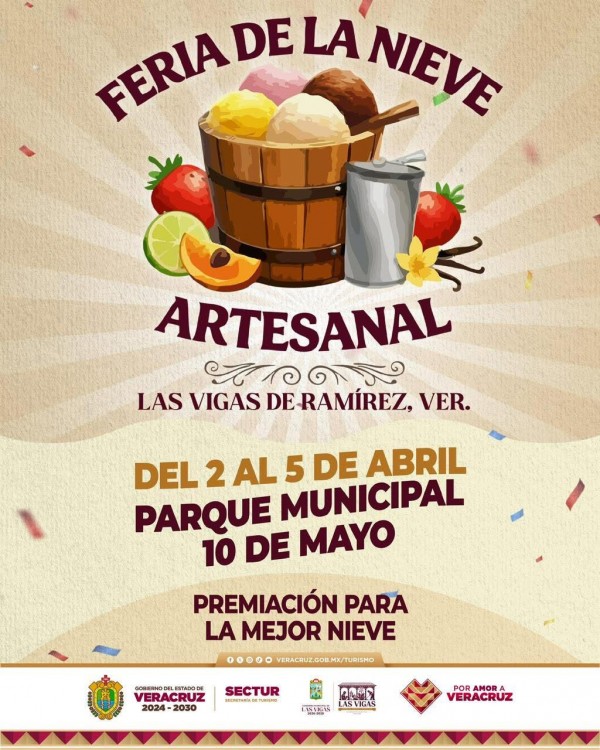 | .- Xalapa, Ver., martes 31 de marzo de 2026.– En esta Semana Santa, la Secretaría de Turismo (SECTUR) invita a disfrutar de la Feria de la Nieve Artesanal, del 02 al 05 de abril, en el Parque Municipal 10 de Mayo, del municipio de Las Vigas, una atractiva opción en la región Cultura y Aventura.
