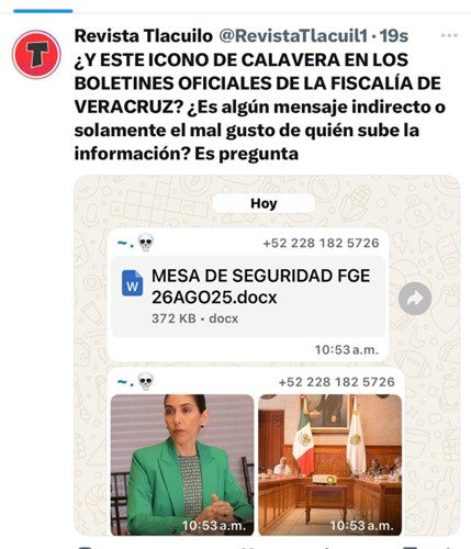 | La CALAVERA en los boletines oficiales de la Fiscal Verónica Hernández Giadáns: ¿Es mensaje?: pregunta El Tlacuilo |