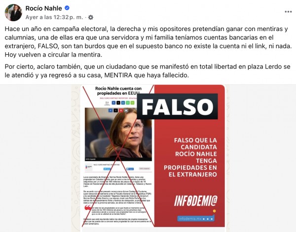| .- Este fin de semana circularon dos noticias falsas en torno a la gobernadora Rocío Nahle y su gobierno.