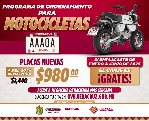 | .- Del 23 de junio y hasta diciembre, la Secretaría de Finanzas y Planeación (Sefiplan) implementará el programa de ordenamiento vehicular exclusivo para motocicletas, con un costo de 980 pesos.