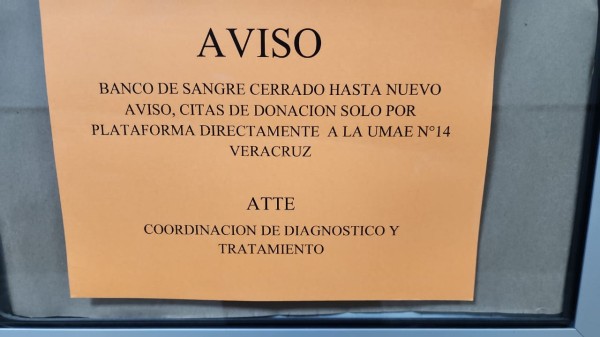 | Criminal que en el IMSS Xalapa no esté en servicio el Banco de Sangre |