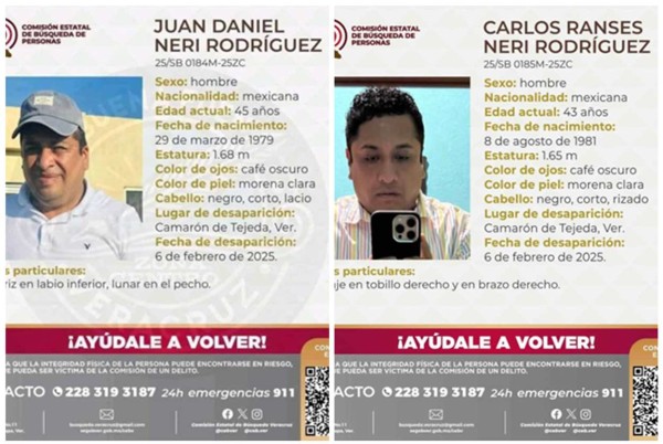 | .- Cortesía del periodista Irineo Pérez Melo.- Los hermanos Carlos Ramsés y Juan Daniel Nery Rodríguez, se encuentran desaparecidos desde el pasado jueves 6 de febrero, sin que a hasta este momento se sepa su paradero, por lo que la Comisión Estatal de Búsqueda de Personas Desaparecidas ya emitió las fichas correspondientes para su ... |