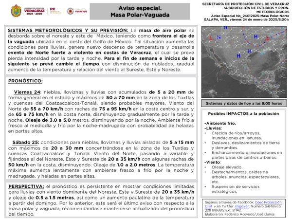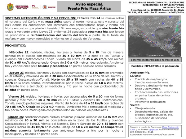 | Se desactiva la Alerta Gris del SIAT-VER y se emite Aviso Especial por Frente frío-Norte |