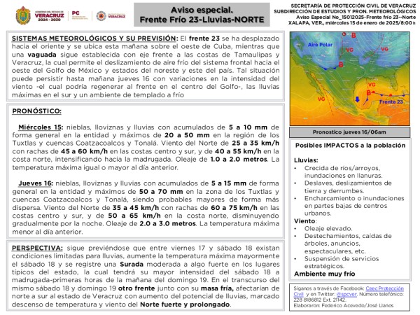 | #AvisoEspecial por Frente frío-Lluvia-Norte |