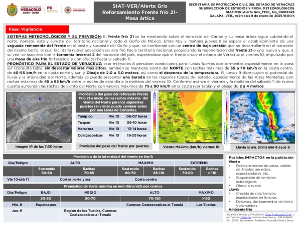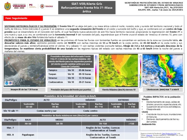 | #AlertaGris del #SIAT_VER por Frente frío-Lluvia-Norte |