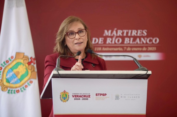 | .- Río Blanco, Ver., martes 07 de enero 2025.- Desde la tierra de hombres y mujeres valientes y patriotas, la gobernadora Rocío Nahle García conmemoró el 118 aniversario de los Mártires de Río Blanco, destacando su relevancia histórica como símbolo de lucha por los derechos laborales y la justicia social en México.
