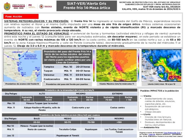 | #AlertaGris del #SIAT_VER por frente frío y Norte |