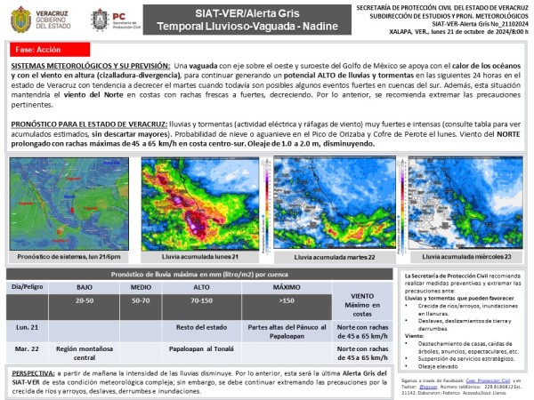 | #AlertaGris del #SIAT_VER en fase de Acción por temporal lluvioso |