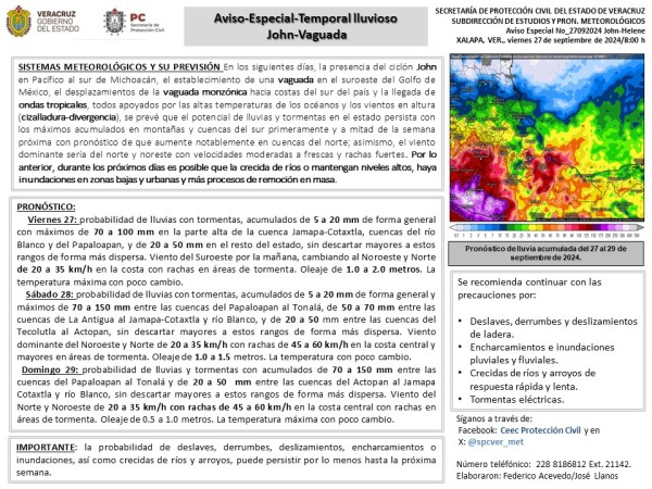 | Población veracruzana: #AvisoEspecial por temporal lluvioso |