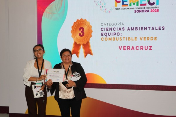 | .- Guaymas, Son., viernes 20 de marzo de 2026.- La estudiante de la Universidad Tecnológica del Centro de Veracruz (UTCV), Teresa Alexandra Lazcano Ramírez, obtuvo el tercer lugar en la categoría Ciencias Ambientales, nivel superior, durante la Feria Mexicana de Ciencias e Ingenierías (FEMECI) 2026, consolidando la participación de Veracruz... |