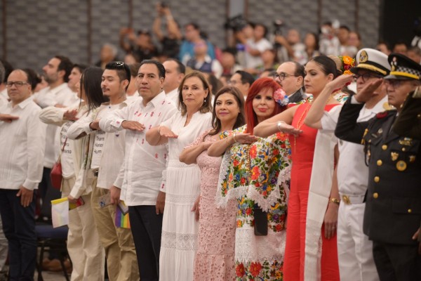 | .- Mérida, Yuc., domingo 18 de enero de 2026.- Como parte de la comitiva de invitados especiales, la gobernadora Rocío Nahle García asistió al Primer Informe del gobernador Joaquín Díaz Mena, quien encabeza en Yucatán el plan de trabajo Renacimiento Maya.