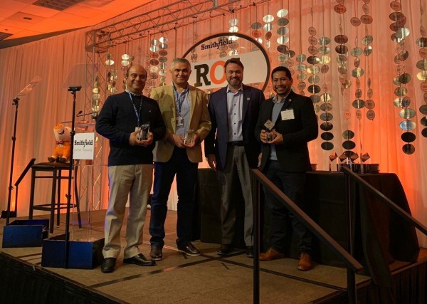 | .- rineo Pérez Melo.- Perote, Ver.- Empleados Granjas Carroll de México que laboran en la Planta de Alimentos de Totalco, ubicada en este municipio recibieron el Premio ROI Awards (Responsability, Operational Excellence and Innovation), al cumplir con los principios rectores dentro de Smithfield, que son Responsabilidad, Excelencia Operativa e Innovación.