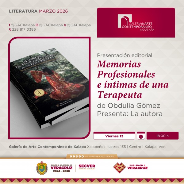 | .- Xalapa, Ver., miércoles 04 de marzo de 2026.- La Secretaría de Cultura de Veracruz (SECVER) invita al público general a las presentaciones editoriales que se llevarán a cabo durante el mes de marzo, en el Auditorio de la Galería de Arte Contemporáneo de Xalapa (GACX). La entrada es libre.