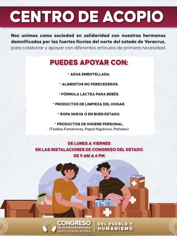 | Abre Congreso Centro de Acopio para apoyar a damnificados del norte del estado |