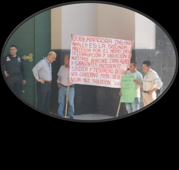 | .- Cortesía del periodista Irineo Pérez Melo.- Agentes y subagentes municipales de Chalma, Veracruz, de nueva cuenta se manifestaron en la Plaza Sebastián Lerdo de Tejada, frente a palacio de gobierno, para denunciar al alcalde Eder Humberto Flores Ortega de no acatar la sentencia emitida por el Tribunal Estatal Electoral de Veracruz de pagar los adeudos salar... |