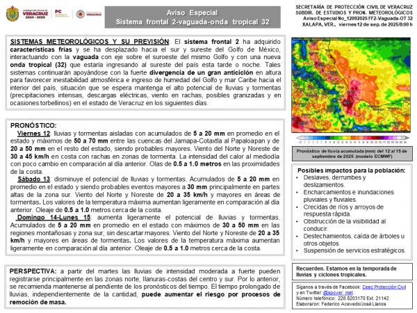 | #AvisoEspecial por Sistema frontal 2 vaguada onda tropical 32 |
