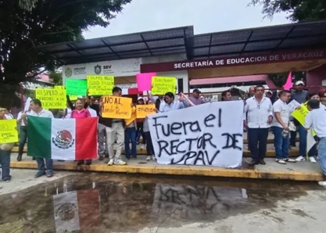 | Se manifiestan asesores solidarios del Bachillerato de la UPAV y exigen la destitución del rector Sergio Torres Mejía |