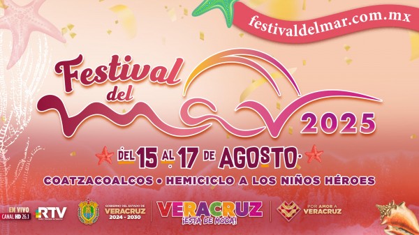 | .- Xalapa, Ver., domingo 27 de julio de 2025.- El Gobierno del estado de Veracruz celebrará del 15 al 17 de agosto el Festival del Mar en Coatzacoalcos, evento que integra reflexión, cultura y música con la participación de reconocidas figuras del arte nacional e internacional.