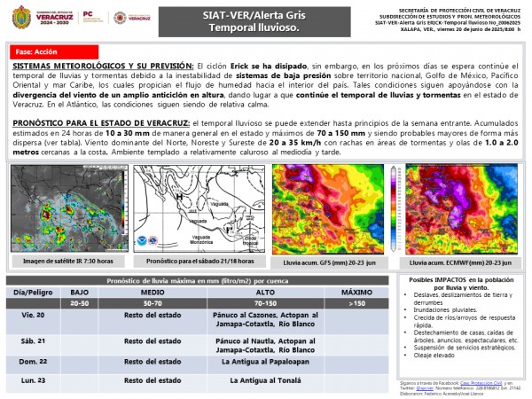 | #AlertaGris en fase de #Acción del #SIAT_VER por temporal lluvioso |