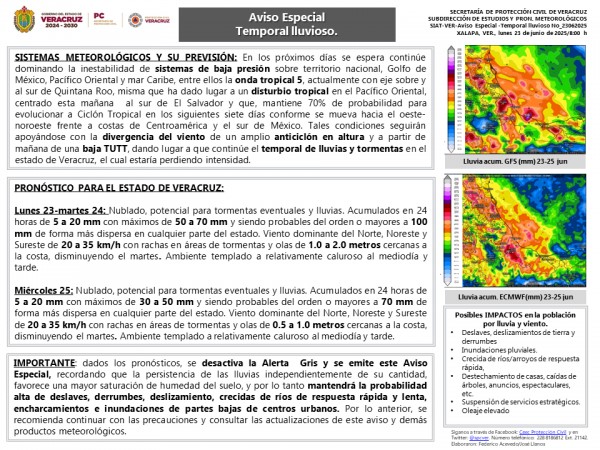 | Se desactiva la #AlertaGris del #SIAT_VER y se emite #AvisoEspecial por temporal lluvioso |