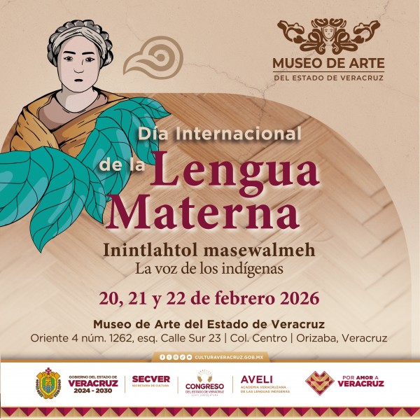 | .- Xalapa, Ver., miércoles 18 de febrero de 2026.- La Secretaría de Cultura de Veracruz (SECVER), en colaboración con el Congreso del Estado y la Academia Veracruzana de las Lenguas Indígenas (AVELI), invita a la jornada conmemorativa del Día Internacional de la Lengua Materna Inintlahtol masewalmeh: La voz de los indígenas, que se realiza... |