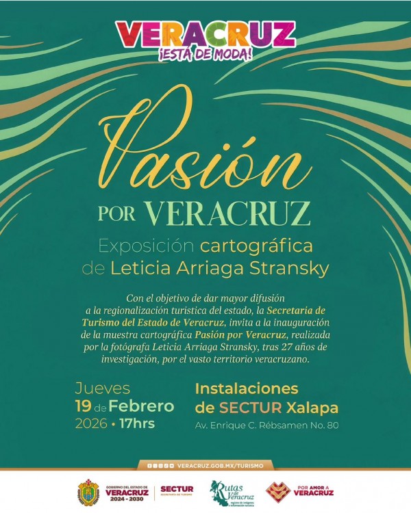 | .- Xalapa, Ver., jueves 19 de febrero de 2026.- La Secretaría de Turismo (SECTUR) inaugurará este día, a las 17:00 horas, la exposición cartográfica Pasión por Veracruz, en sus instalaciones ubicadas en Enrique C. Rébsamen número 80, en Xalapa, como parte de una estrategia integral para fortalecer la promoción y el pos... |