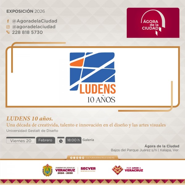 | .- Xalapa, Ver., jueves 19 de febrero de 2026.- La Secretaría de Cultura de Veracruz (SECVER), en coordinación con la Universidad Gestalt de Diseño, invita al público a la inauguración de la exposición Ludens 10 años., que se llevará a cabo el viernes 20 de febrero, a las 18:00 horas, en el Ágora de la Ciudad. La entra... |