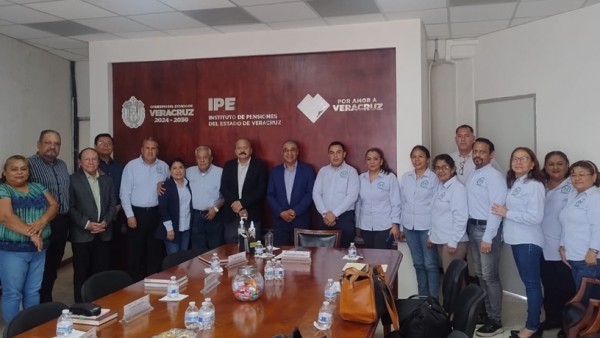 Cortesía del periodista Irineo Pérez Melo.- La dirigencia del Sindicato Único de Trabajadores del Instituto de Espacios Educativos del Estado de Veracruz (SUTIEEEV) y funcionarios del Instituto de Pensiones del E... |