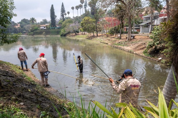 | .- Xalapa, Ver.- Personal de la Dirección de Medio Ambiente, en coordinación con la Comisión Municipal de Agua Potable y Saneamiento (CMAS), continúa con los trabajos permanentes de limpieza en los lagos de Las Ánimas, con el fin de recuperar este cuerpo de agua.