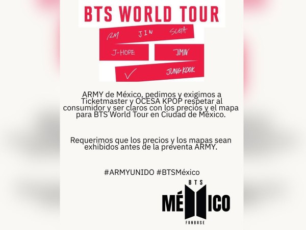 | ARMY exige a OCESA transparencia en precios y mapa para conciertos de BTS en México (+Fotos) |