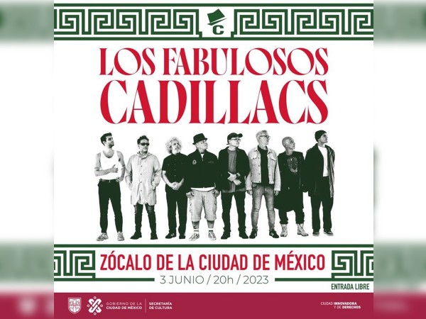 | .- Por medio de su cuenta de Twitter, la Secretaría de Cultura de la CDMX anunció que el próximo 3 de juni, Los Fabulosos Cadillacs se presentarán en el zócalo.