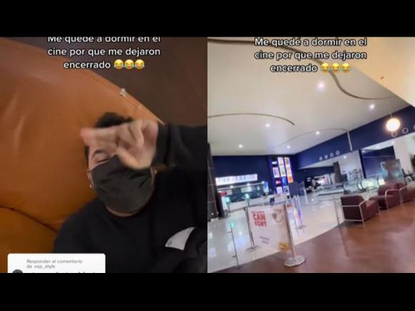 | .- TikTok ha vuelto tendencia el video de un sujeto en México quien pasó un momento de espanto cuando se despertó y se dio cuenta que estaba encerrado dentro de un cine local, por lo que decidió grabar su experiencia en esta red social, donde miles usuarios reaccionaron ante su impactante pero hilarante episodio.