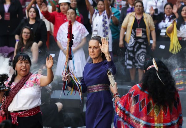 | SHEINBAUM RECIBE EL BASTÓN DE MANDO DE MUJERES INDÍGENAS; “¡MUCHA FUERZA, LE DESEAN! |