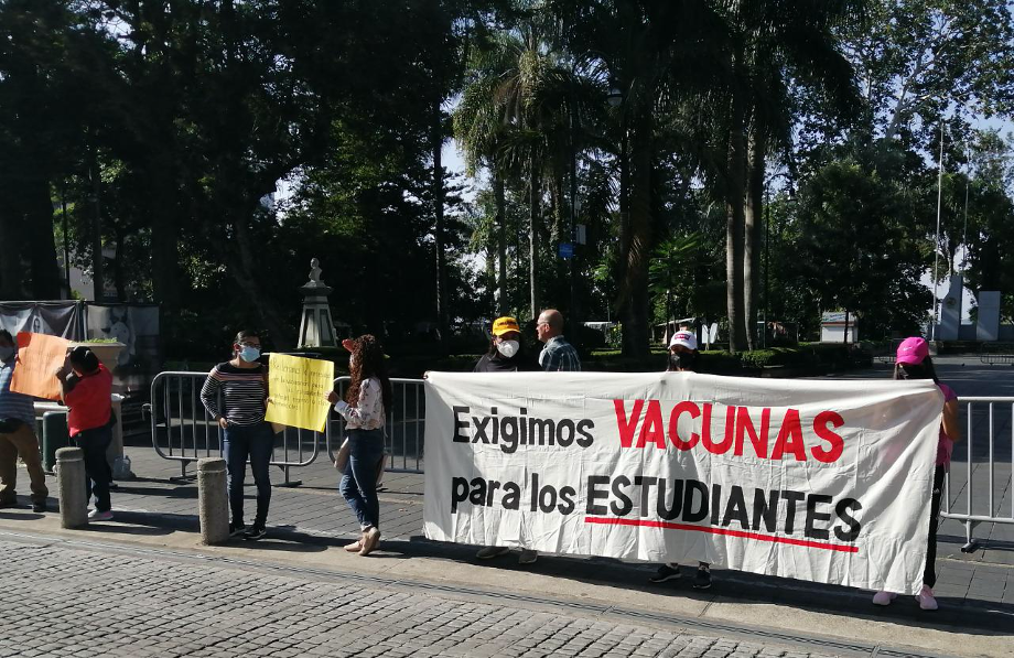 En la Capital del Estado, decenas de Jóvenes integrantes de la Federación Nacional de Estudiantes Revolucionarios “Rafael Ramírez”, se manifestaron en cadena humana en la banqueta del Parque Benito Juárez, frente a Palacio Municipal, en protesta de solicitar al Gobierno Federal y Estatal para que la vacunación sea para todos los estudiantes desde el nivel preescolar, primaria, secundaria, bachillerato y demás, ya que si es que se va a volver a clases de manera presencial deben de estar vacunados todos en general, con la finalidad de evitar contagios masivos en los planteles educativos, a lo cual Samuel Díaz Rosas, responsable de la FNERRR en Xalapa, dijo que fue una gran accion el abrir el portal de la Secretaria de Salud, para que se puedan inscribir y recibir la vacuna los jóvenes de 18 años en adelante, por lo que considero que eso es insuficiente, pues se deben de vacunar a los de menor edad, ya que es posible, porque ya se reconoce la eficacia de una de las vacunas en mayores de 12 años, por lo que se debe de vacunar a todos los estudiantes, para poder tener un regreso a clases con seguridad, además exige que haya una mejor infraestructura en las escuelas, ya que de cada diez escuelas existentes, en seis no hay la infraestructura necesaria, para poder regresar a clases, así mismo indico que en cientos de escuelas no hay agua, por lo tanto no se puede regresar a clases en esos centros escolares, este tipo de actividad lo realizaron también en los Municipios de Córdoba, Orizaba, Martínez de la Torre, el Puerto de Veracruz, Tantoyuca y Coatzacoalcos…